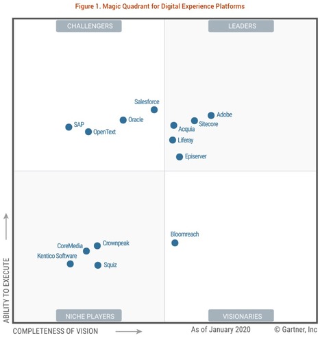 Learn why Gartner continues to position Liferay as a Leader for DXPs. Positioned Furthest for Completeness of Vision Hong Kong 7 February 2020 Adobe NasdaqADBE has announced it has been positioned by Gartner Inc. 3 2020 Sitecore the global leader in digital experience management software today announced that the company has once again been positioned as a Leader in Gartners Magic Quadrant for Digital Experience Platforms.
